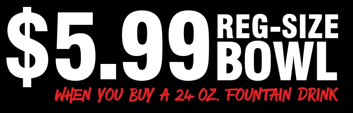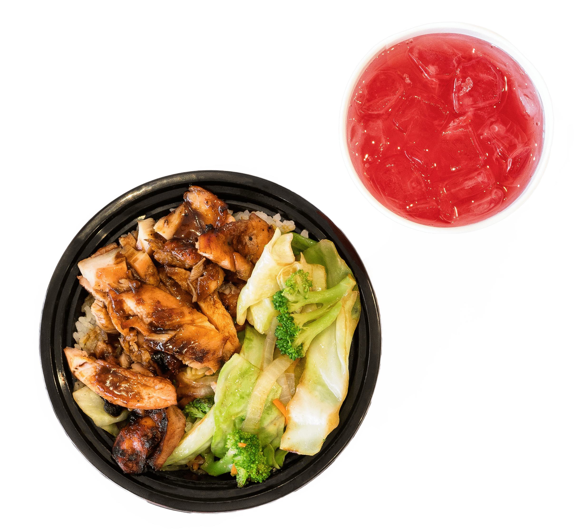 Includes your choice of Chicken Teriyaki or Spicy Chicken, veggies and brown or white rice and 24 oz. Fountain Drink. (Offer not applied to additional cost substitutions like noodles, fried rice, or extra spicy.) One per order, cannot be used with other promotions or discounts.